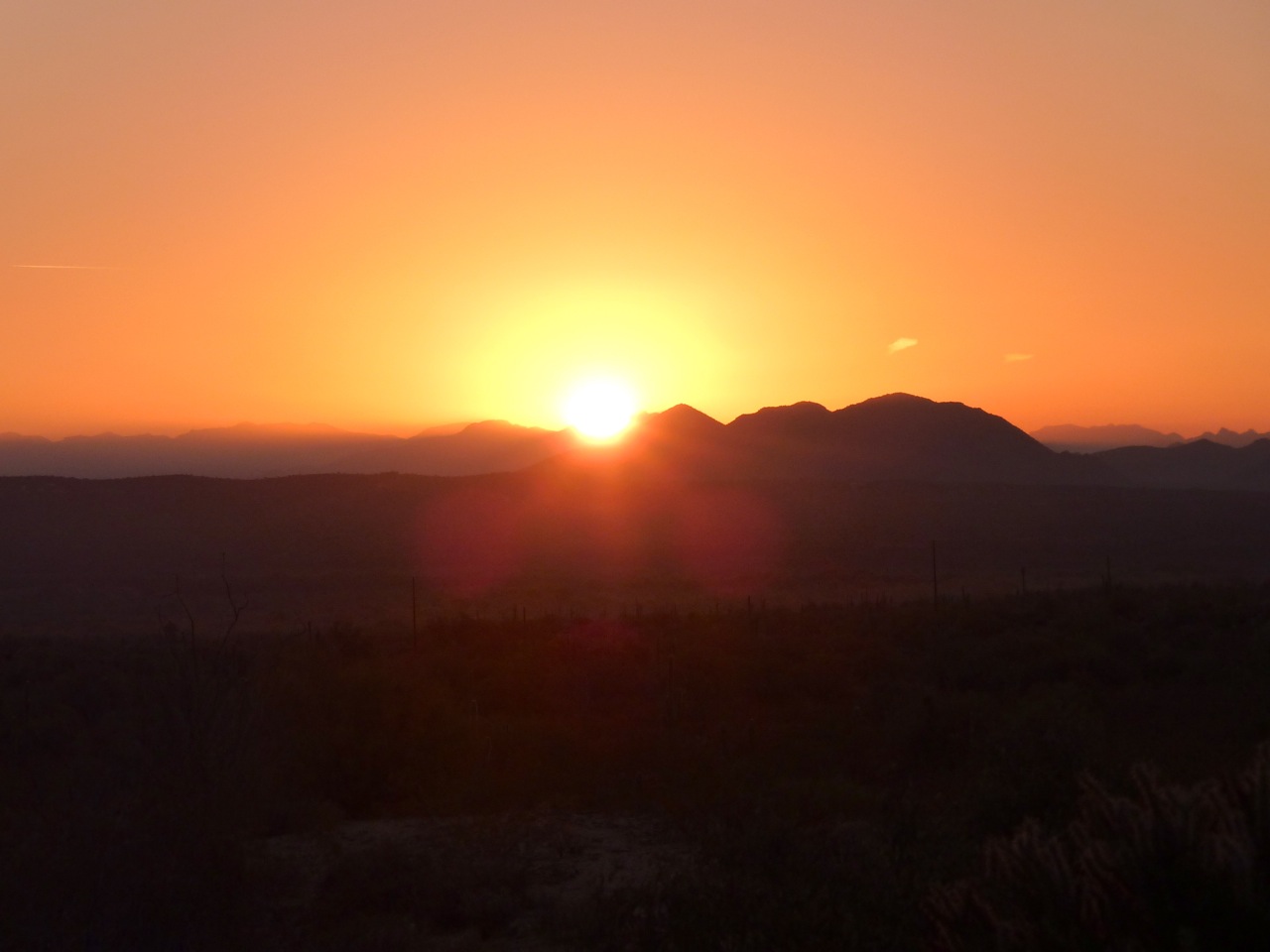 The sun hides behind the mountains and a pink and blue sky entertains me for a while. The trail is easy at first, but then becomes sandy and washboard like with short steep hillocks. When it is too dark to see any more I turn on my headlamp and immediately become disoriented. The wash of light against the bright sand causes a whiteout and I can’t judge the distance to the ground. I almost fall down so I stop and then walk until my eyes adjust. I run for a while and then turn off my light to enjoy the view of a star filled sky. Gorgeous!