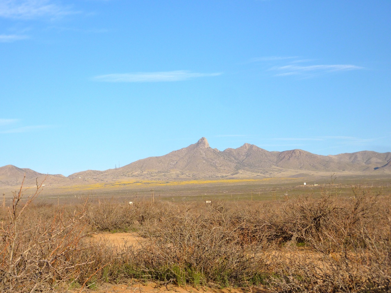 After running through the base for several miles, we transition to a dirt road. The jagged Organ Mountains make up the backdrop and a prominent peak, San Augustin, can be seen in the distance. Mexican gold poppies blanket the lower slopes of the mountains adding to the beauty. (Poppies only bloom during years that have significant rainfall.)